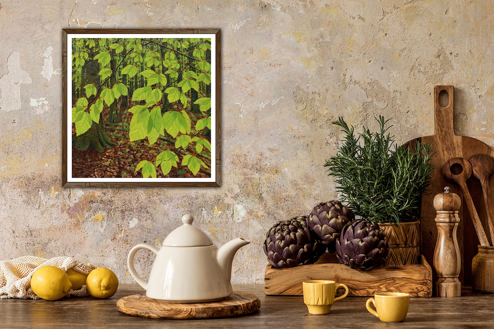 The newly sprouted beech leaves are a classic sign of spring and are a motif my father keeps coming back to. You can't help but get in the spring mood when you have it decorating your home.