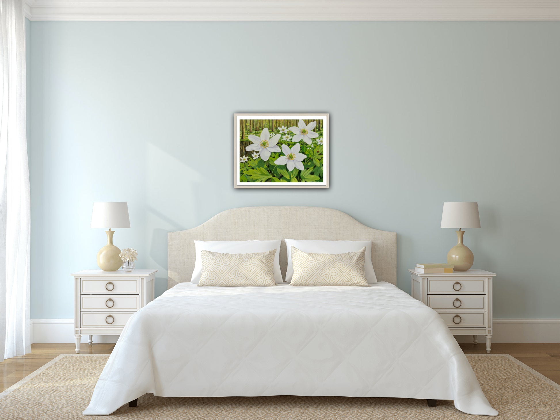 Alle kunsttryk er tilpasset tilgængelige rammemål med en hvid kant.