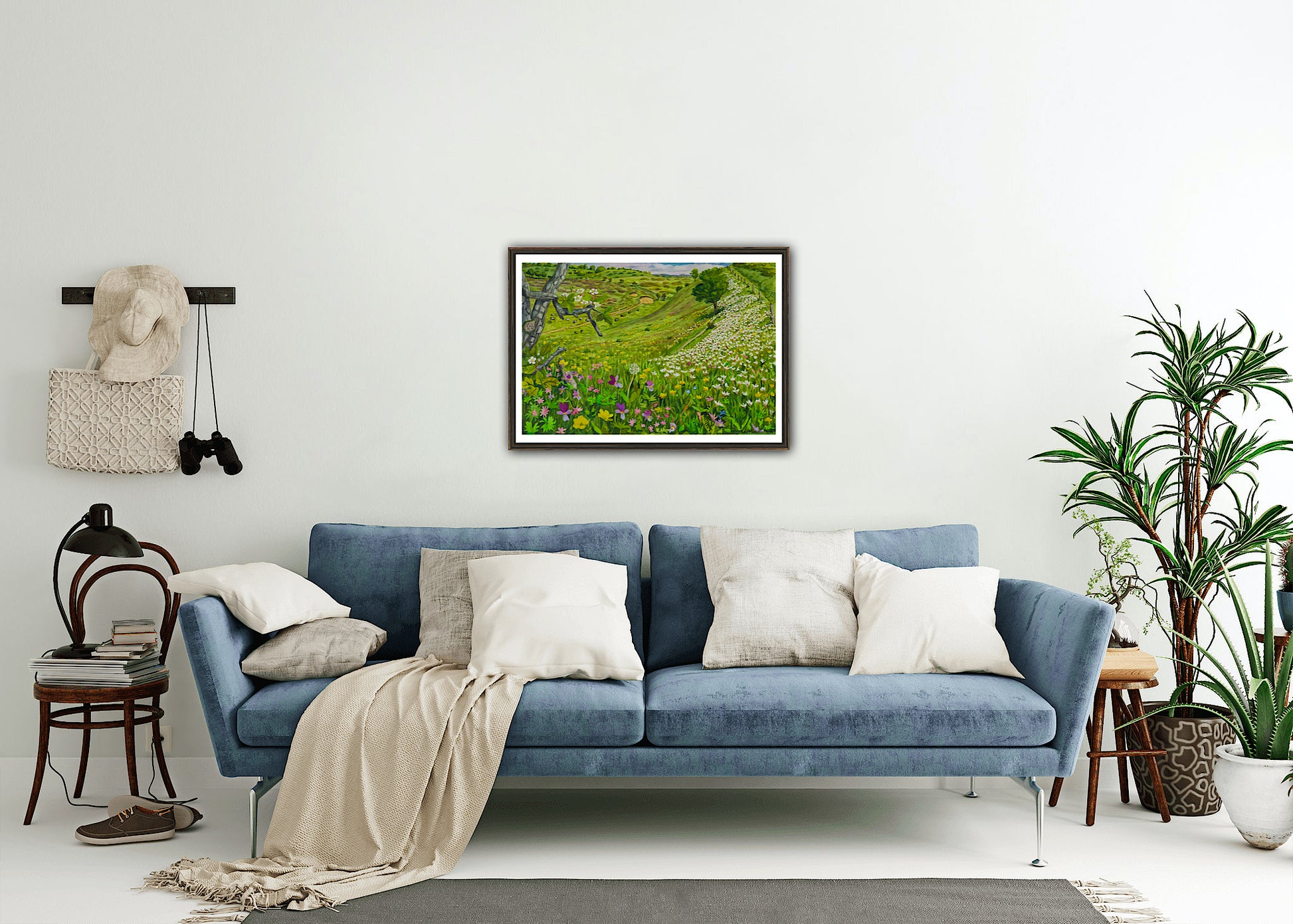 Alle kunsttryk er tilpasset tilgængelige rammemål med en hvid kant.