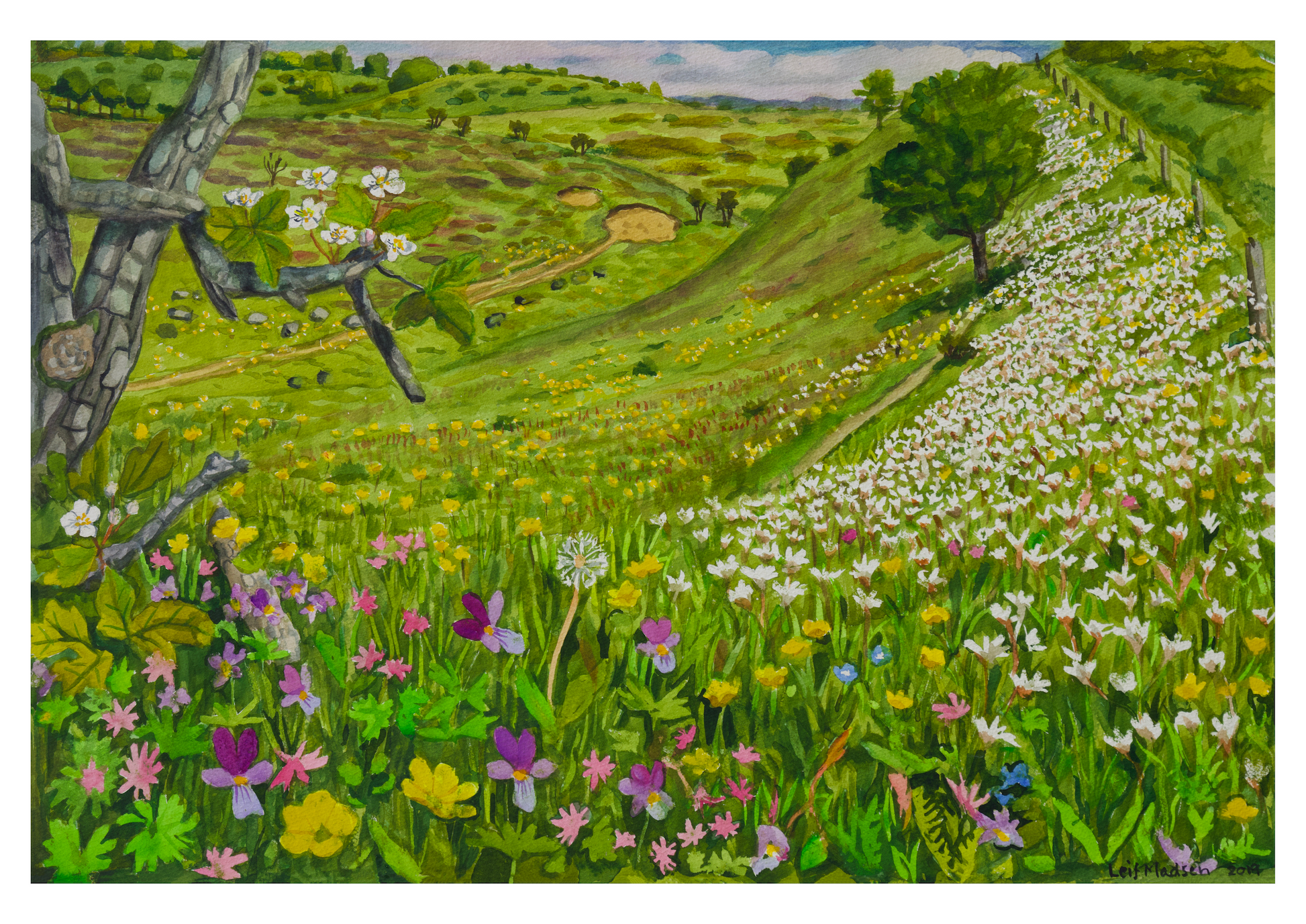 Selvom min far er mest kendt for sine oliemalerier, maler han også akvareller en gang imellem. Her er et yndigt sommerlandskab fra Mols Bjerge, hvor han var på tur med Danerne i 2019.