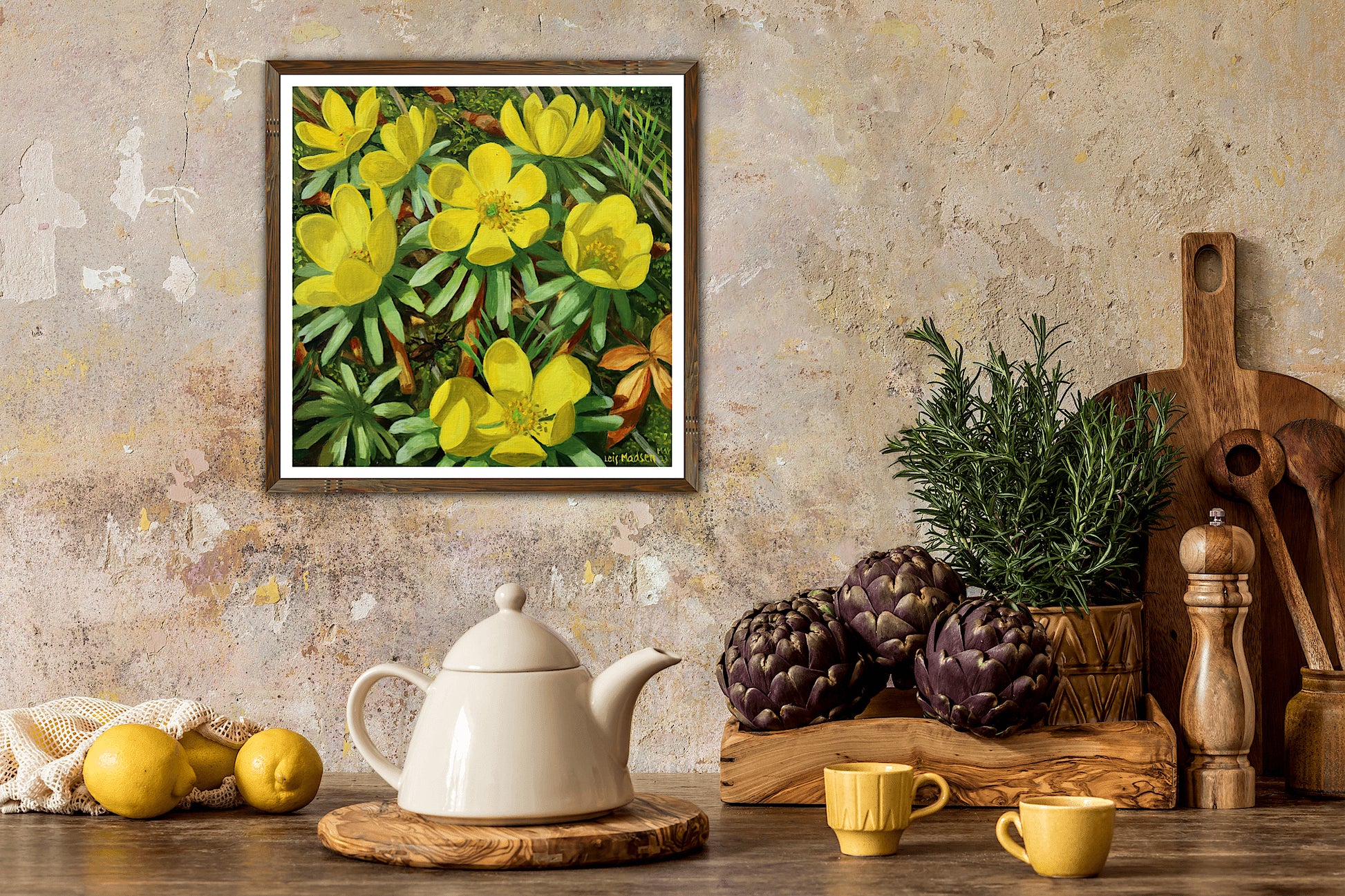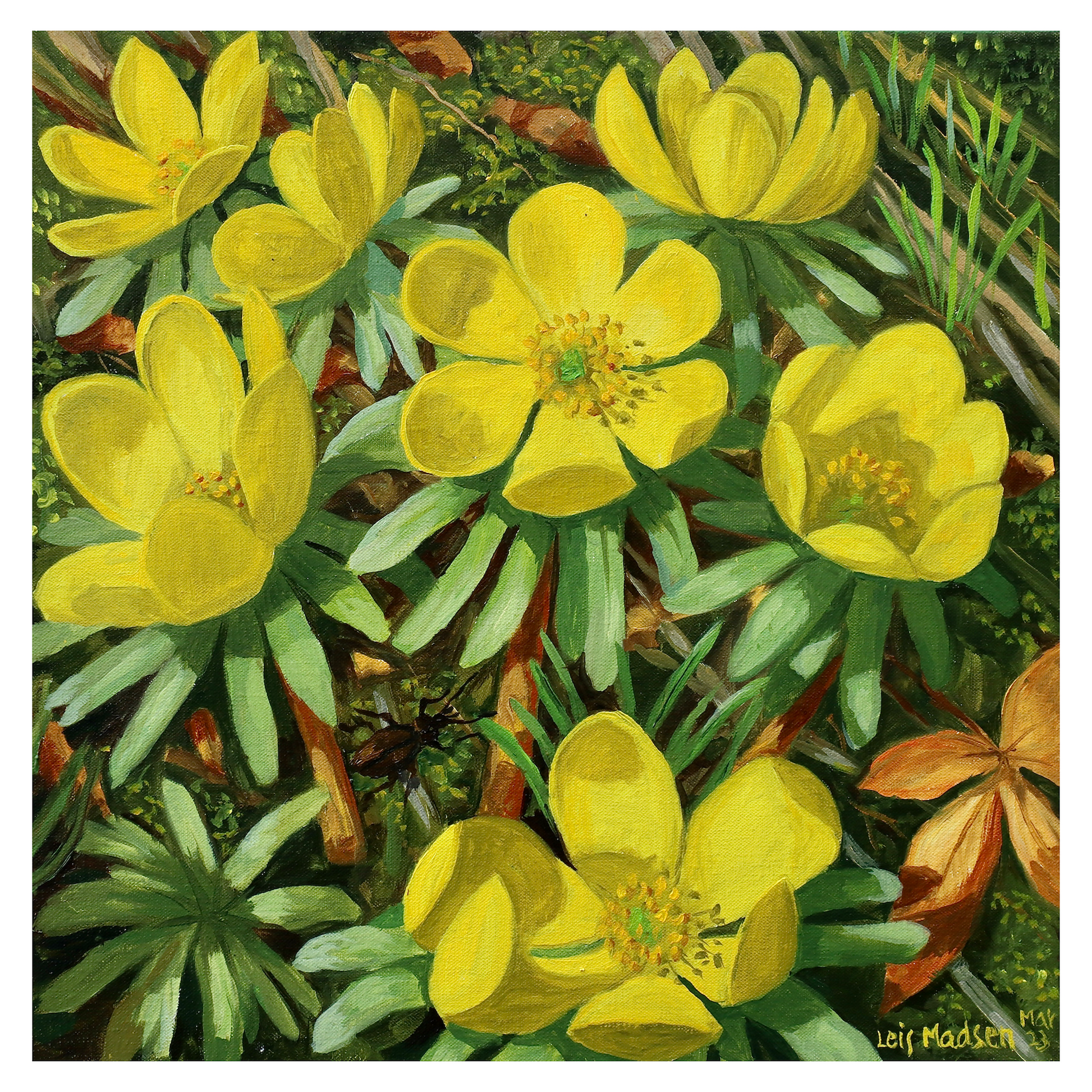 Et klassisk motiv fra min far med de gule erantis, der varsler forårets begyndelse. De små fine blomster står og lyser og minder os om, at dagene bliver længere, og sommeren er inden for rækkevidde.