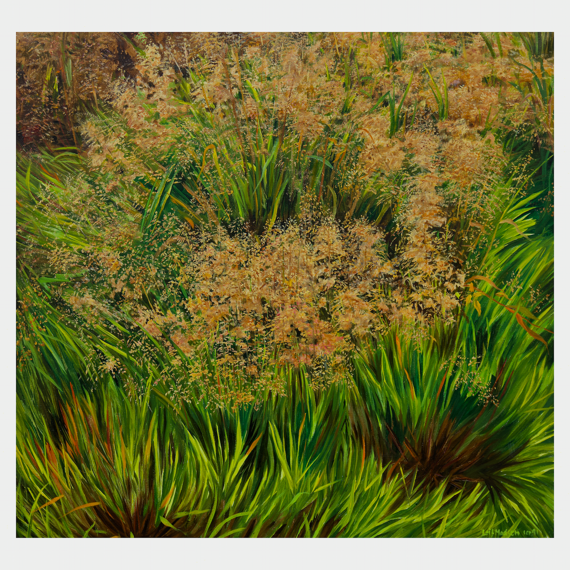 Jeg elsker farverne på dette efterårsmaleri med græs, der er gået i frø. Et af min fars ældre malerier, som faktisk stadig er til salg.