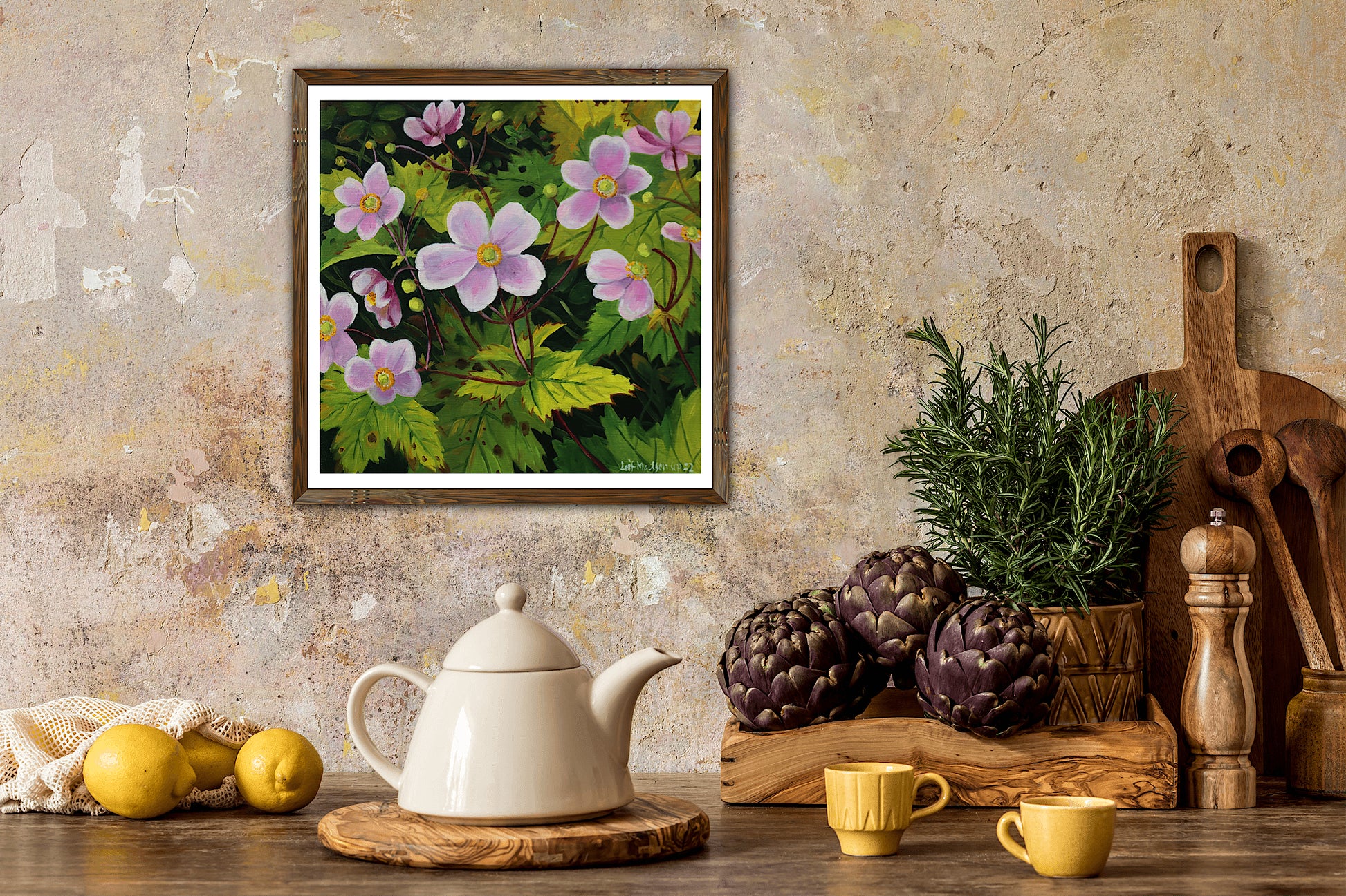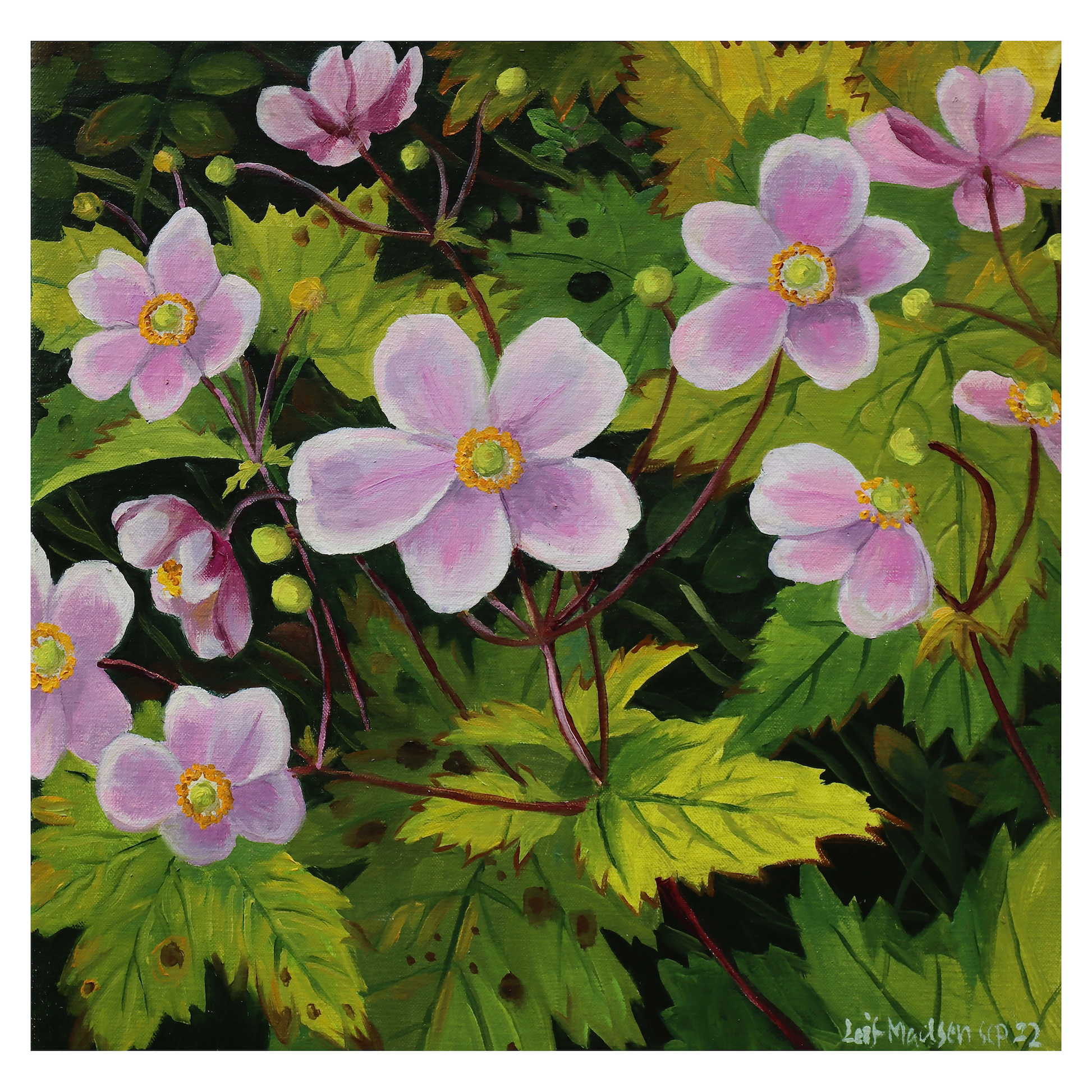 Et skønt sensommermotiv, fra min fars egen have, med de smukke høstanemoner helt tæt på. De fleste haveelskere holder meget af høstanemonen, der blomstrer langt hen på efteråret. Den har efterhånden stået model for min far mange gange gennem årene.