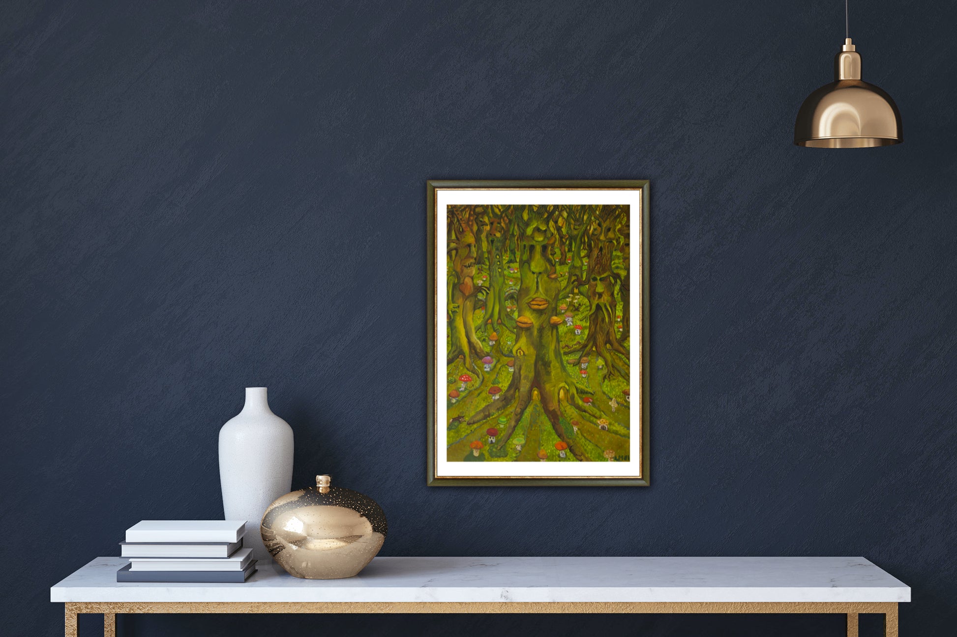 Alle kunsttryk er tilpasset tilgængelige rammemål med en hvid kant.