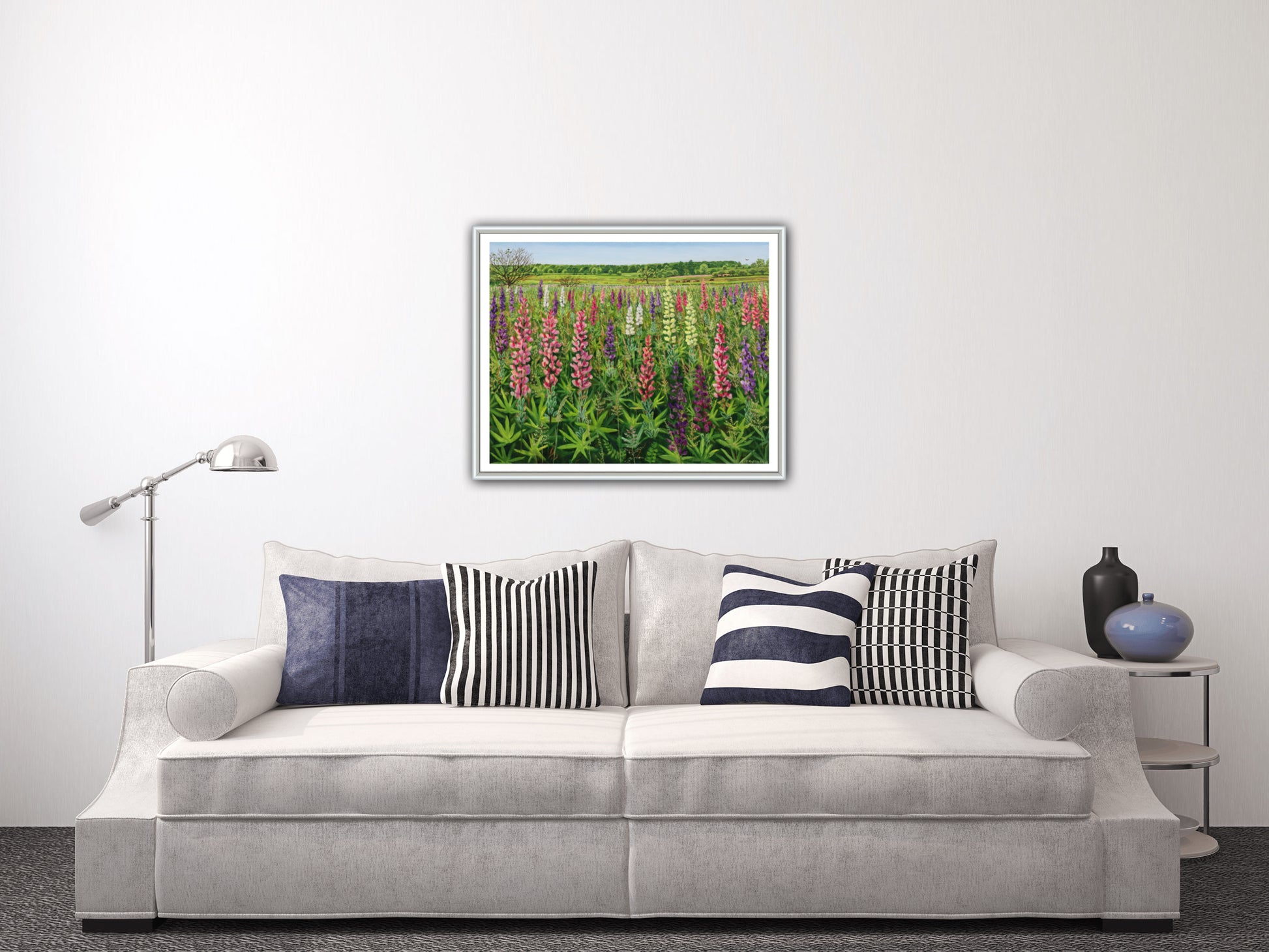 Alle kunsttryk er tilpasset tilgængelige rammemål med en hvid kant.