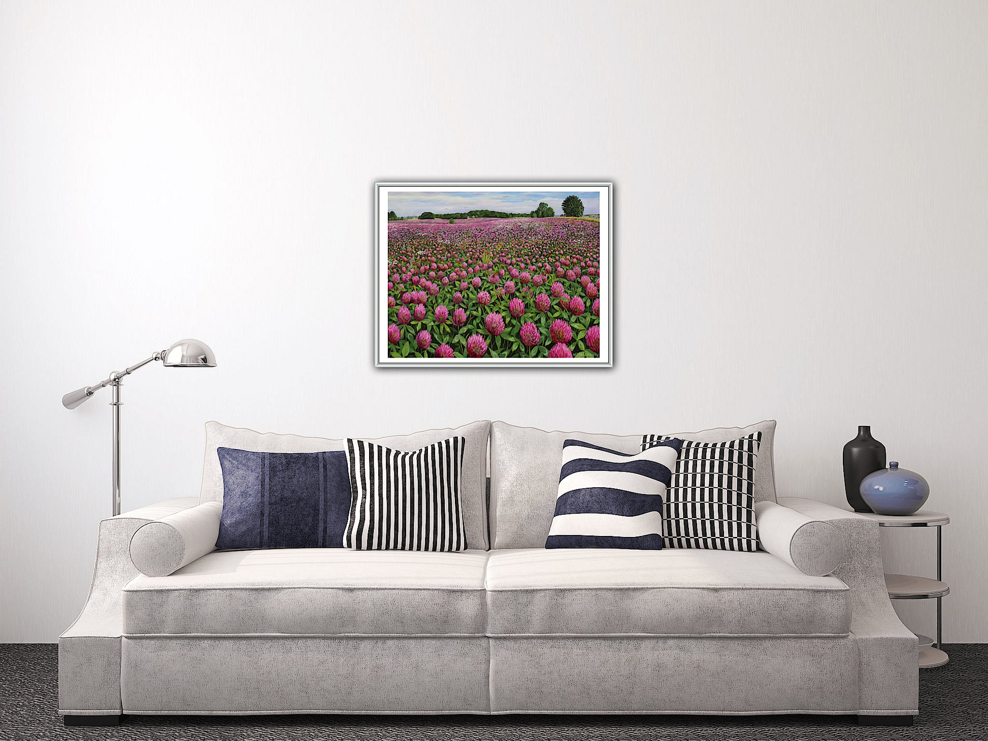 Alle kunsttryk er tilpasset tilgængelige rammemål med en hvid kant.