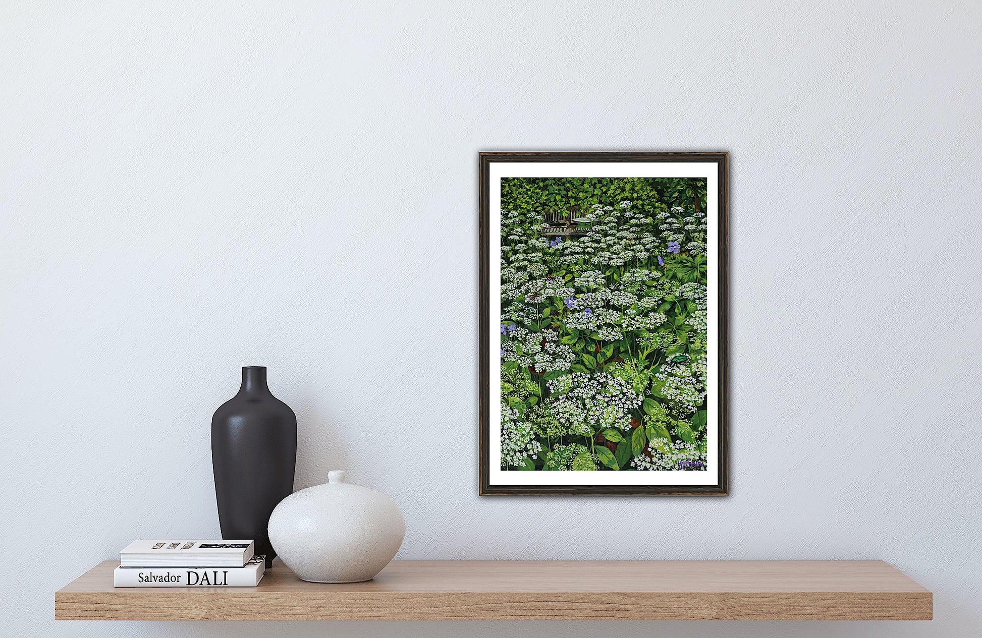 Alle kunsttryk er tilpasset tilgængelige rammemål med en hvid kant.