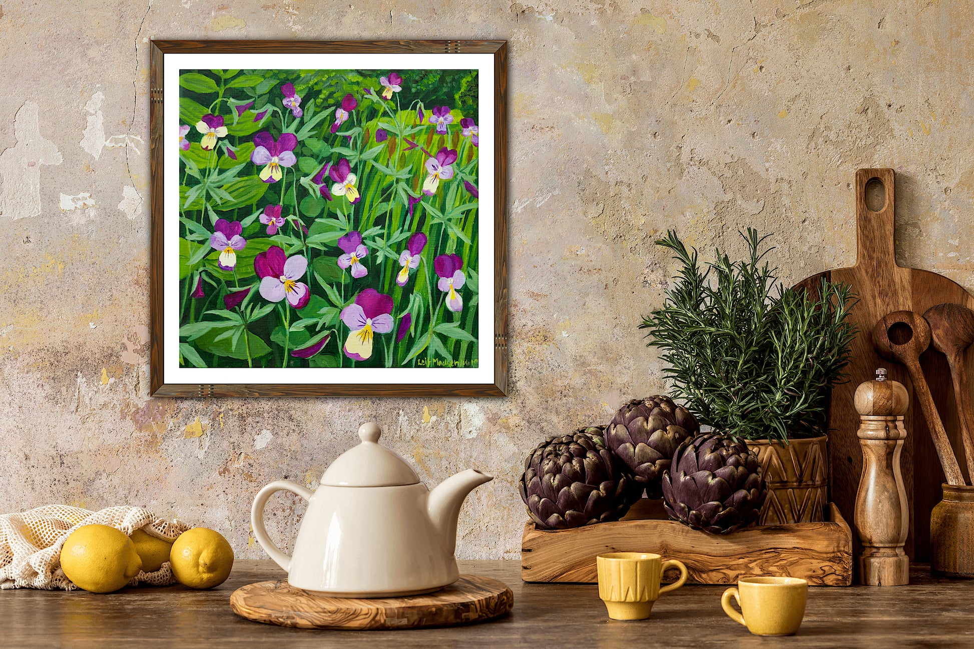 Alle kunsttryk er tilpasset tilgængelige rammemål med en hvid kant.