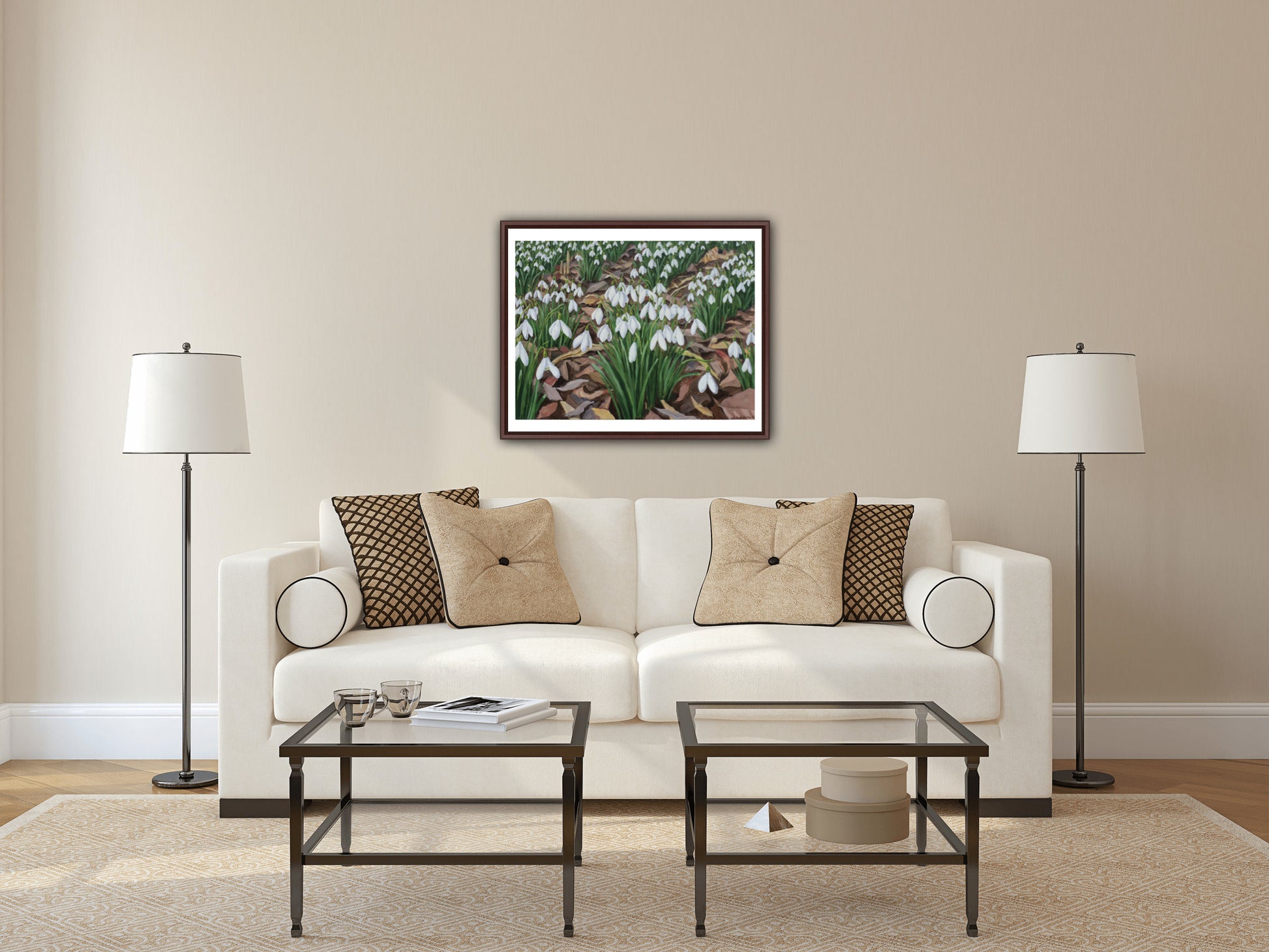 Alle kunsttryk er tilpasset tilgængelige rammemål med en hvid kant.